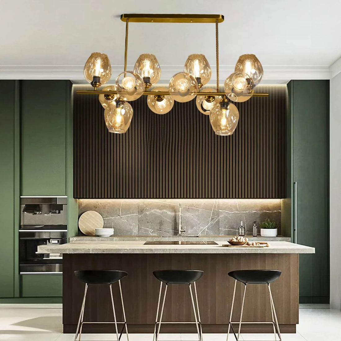 Modern Luxury LED Pendant Lamp – 13-Bulb Amber Glass Chandelier for Living Room, Dining Room & Bedroom – Adjustable Height | Luxiono Lighting
